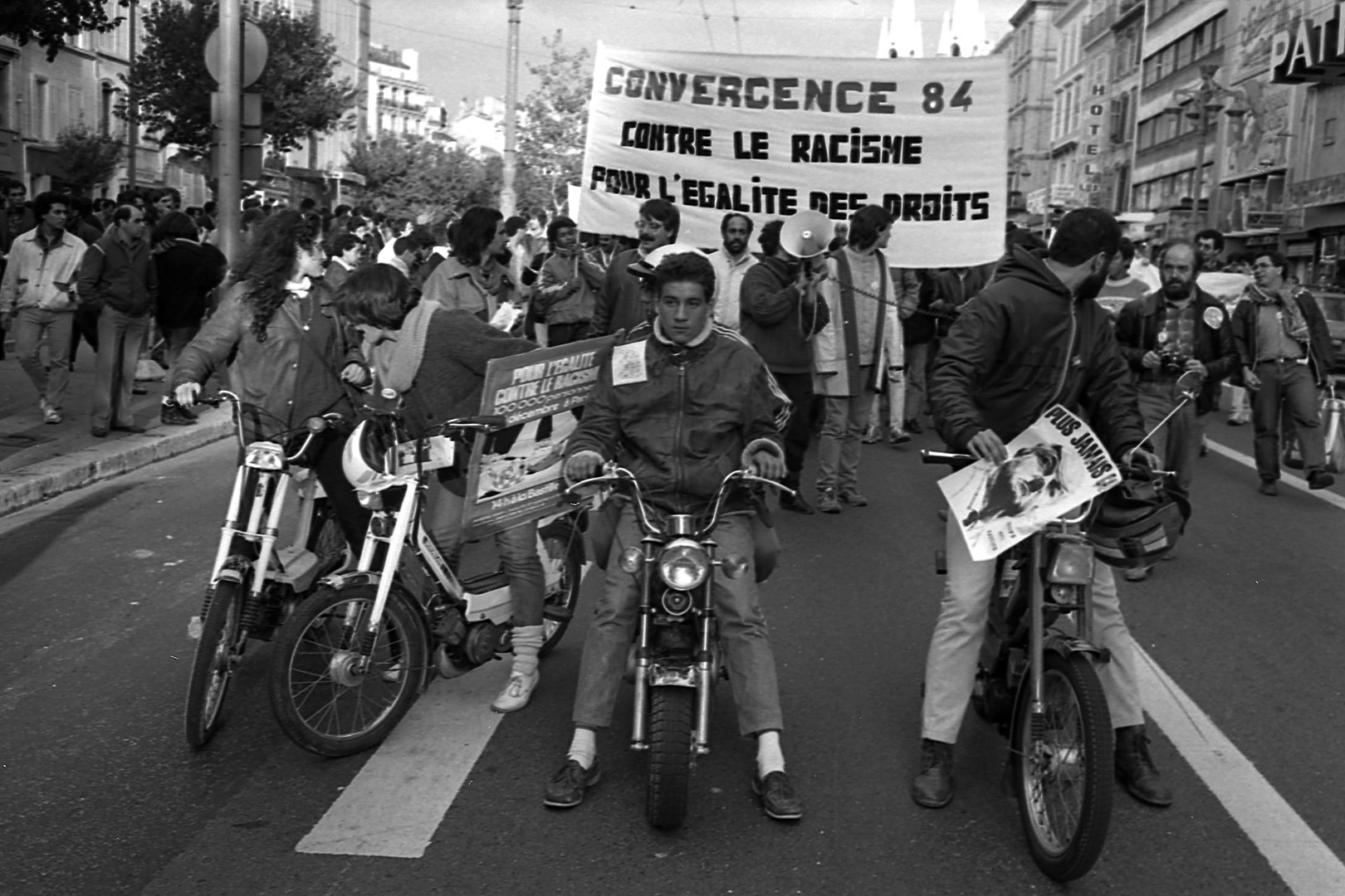 Les revendications portent sur l’égalité des droits entre les nationaux et les immigrés et leurs enfants. À cette époque, le regard de la société sur cette marche reste une logique communautaire, très paternaliste. D’où l’appellation « marche des Beurs ». Un débat interne entre les différents collectifs et associations ayant participé à la marche émergent : la principale divergence se situe entre le choix d’affirmer ce mouvement comme spécifique aux immigrés et caractérisé par une population maghrébine, ou la volonté d’ouvrir ce mouvement à d’autres alliances pour éviter l’isolement. En 1984, la deuxième marche (en mobylette) « convergences 84 » pour un rassemblement plus large et interculturel a lieu. Cinq villes de départ pour converger vers Paris. Les divergences se font toujours sentir. Il n’y a toujours pas de porte-parole fédérant les différentes tendances, pas d’organisation permettant de porter une revendication unique de l’ensemble des jeunes.
